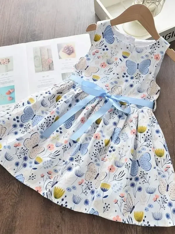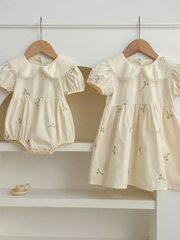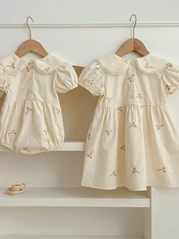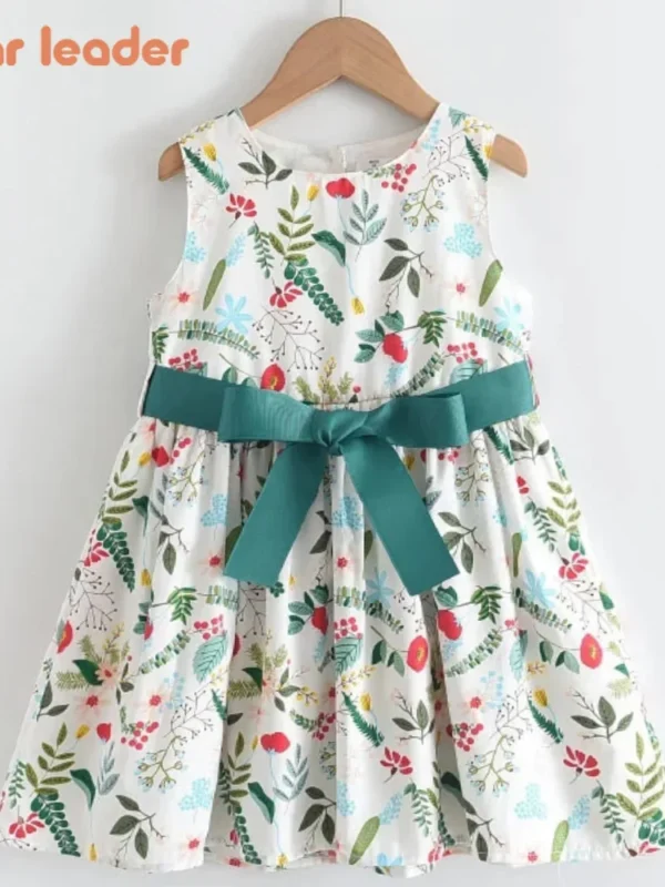 Bear Leader Girls’ Summer Dress – Floral Embroidered Princess Outfit with Flying Sleeves for Ages 2-6