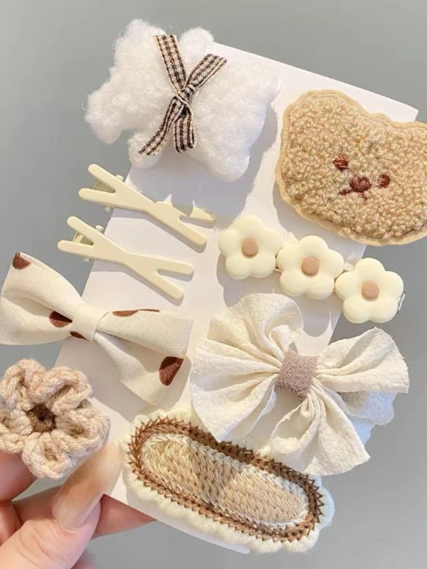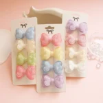 4/10pcs Double Layered Three-Dimensional Bow Hair Clip Cute Candy Colored Cotton Safety Hair Clip Children’s Hair Accessory
