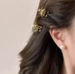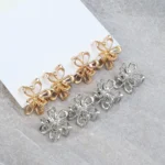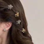 2/4pcs Mini Metal Hair Claw Clips – Gold & Silver Flower Geometric Grab Clamps | Korean Style Shark Clips for Girls & Women