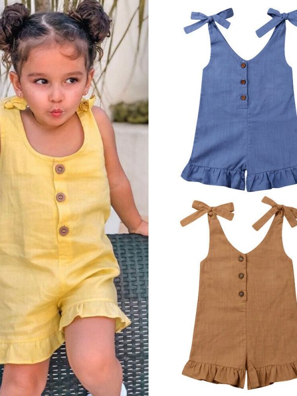 جمبسوت بناتي بلون موحد من القطن والكتان