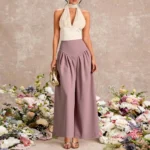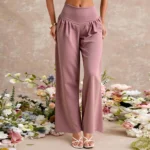 بنطلون نسائي من Mia Muse صيفي كوري مريح 2025 سادة للاستخدام اليومي بخصر طبيعي وطول كامل وواسع الساق مناسب للعطلات