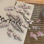 دبابيس شعر كريستالية فاخرة على شكل قلب عتيق من حجر الراين الوردي ومشابك شعر فضية للنساء والفتيات مشابك شعر جميلة وإكسسوارات شعر