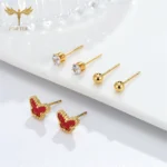 طقم أقراط أنيقة على شكل فراشة وكرات للنساء – زركون تشيكوسلوفاكيا، فولاذ مقاوم للصدأ مضاد للحساسية، هدايا مجوهرات عصرية