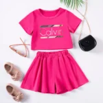 تي شيرت + شورت بطبعة حروف كالفن للبنات