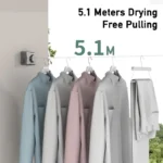 حبل غسيل قابل للسحب بطول 5.1 متر، قابل للتمديد، مثبت على الحائط