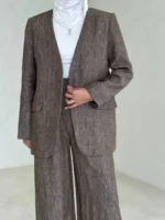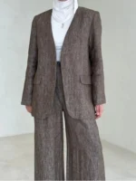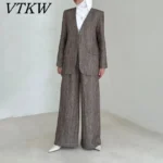بليزر نسائي من VTKW – طقم بليزر وبنطلون بدون أزرار من قطعتين مصنوع من الكتان، بتصميم على شكل حرف V، طراز كاجوال، بدون أزرار، طقم ربيع/صيف