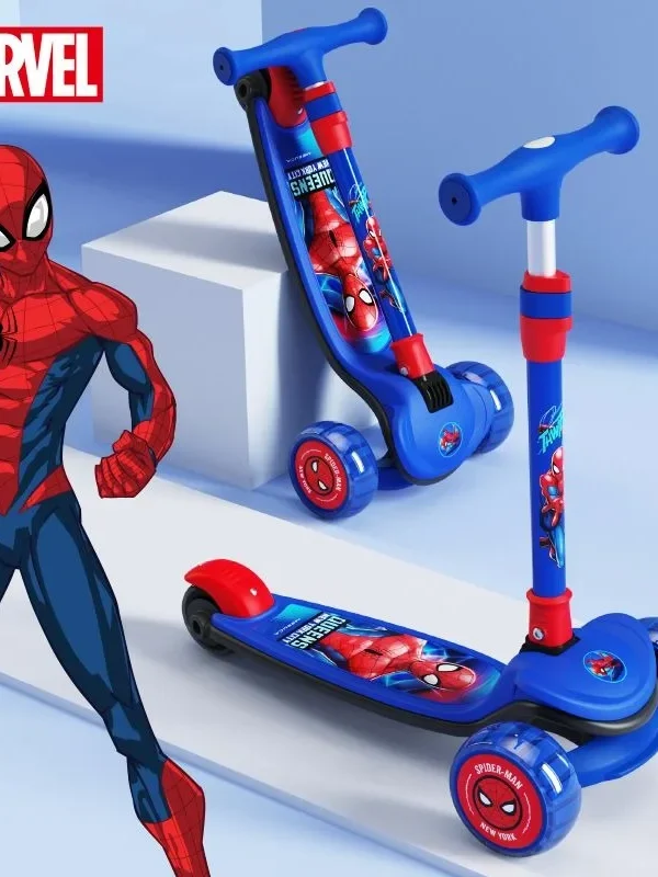 سكوتر مارفل أفينجرز 2 في 1 سبايدرمان للأطفال – لعبة دواسة كرتونية قابلة للطي وهدية ركوب