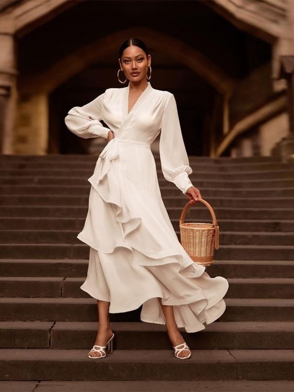 أزياء نسائية غير رسمية فستان حفلات ساتان بدون أكمام فستان حفلات ساتان بطول الشاي مع جيوب فستان حفلات مسائية رسمي