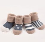 أطقم لطيفة للأطفال حديثي الولادة أطقم أطفال شتوية دافئة وناعمة قطنية مخططة ناعمة جوارب مخططة ناعمة للأطفال من 0-3 سنوات
