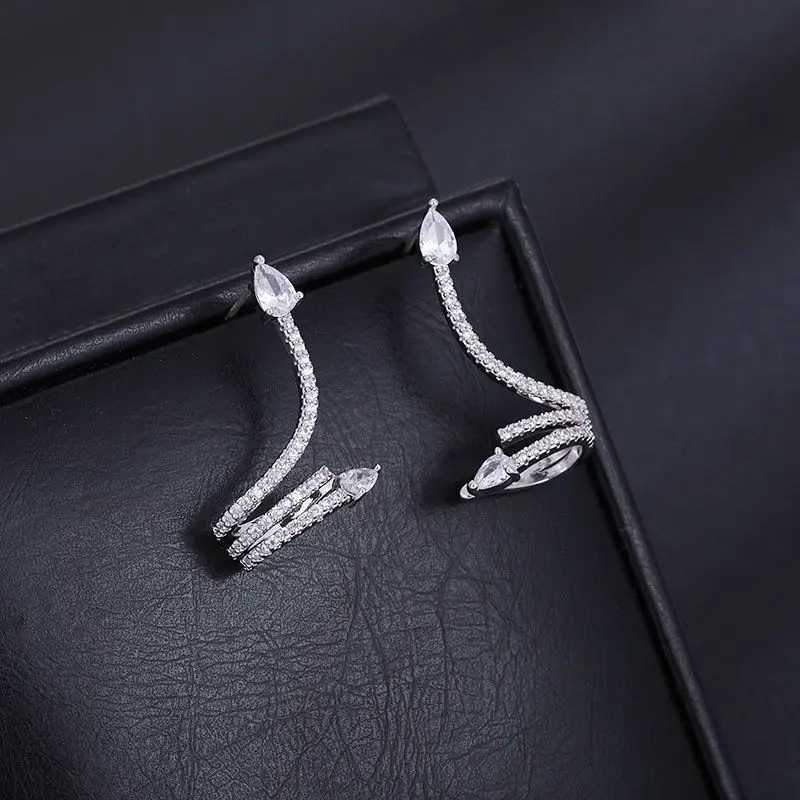 أقراط أذن عصرية على شكل ثعبان للنساء – تصميم لامع من الزركون وأحجار الراين مع مشبك للأذن، هدية مجوهرات أنيقة للحفلات