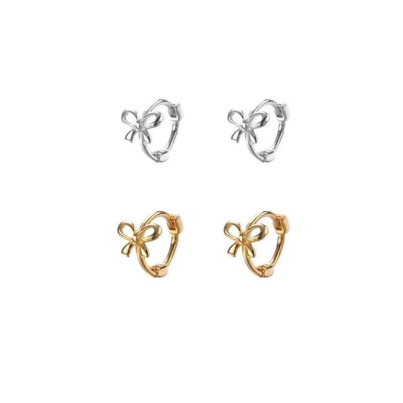 أقراط فضية دائرية على شكل فيونكة – أقراط معدنية طويلة متدلية بتصميم جمالي Y2K للنساء