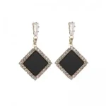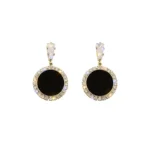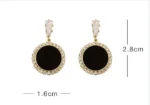 أقراط من الفضة الإسترليني عيار 925 مرصعة بأحجار الراين السوداء – مجوهرات كورية دائرية بسيطة للنساء