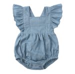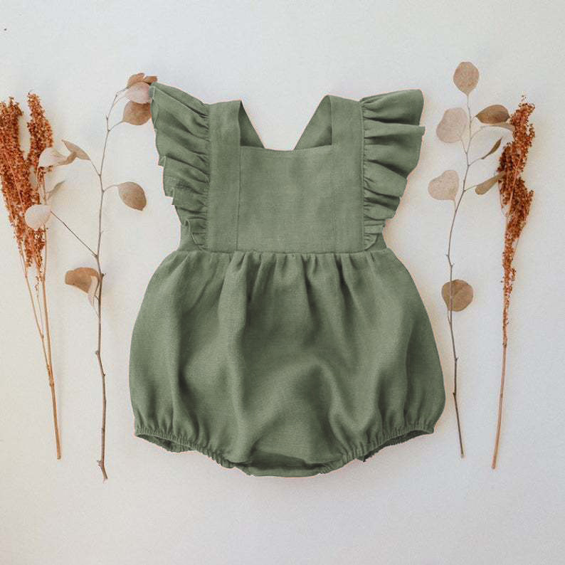 بدلة أطفال صيفية من قطعة واحدة بحمالات من القطن والكتان