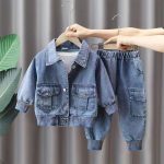 بدلة جينز للأولاد ملابس ربيعية على الطراز الغربي