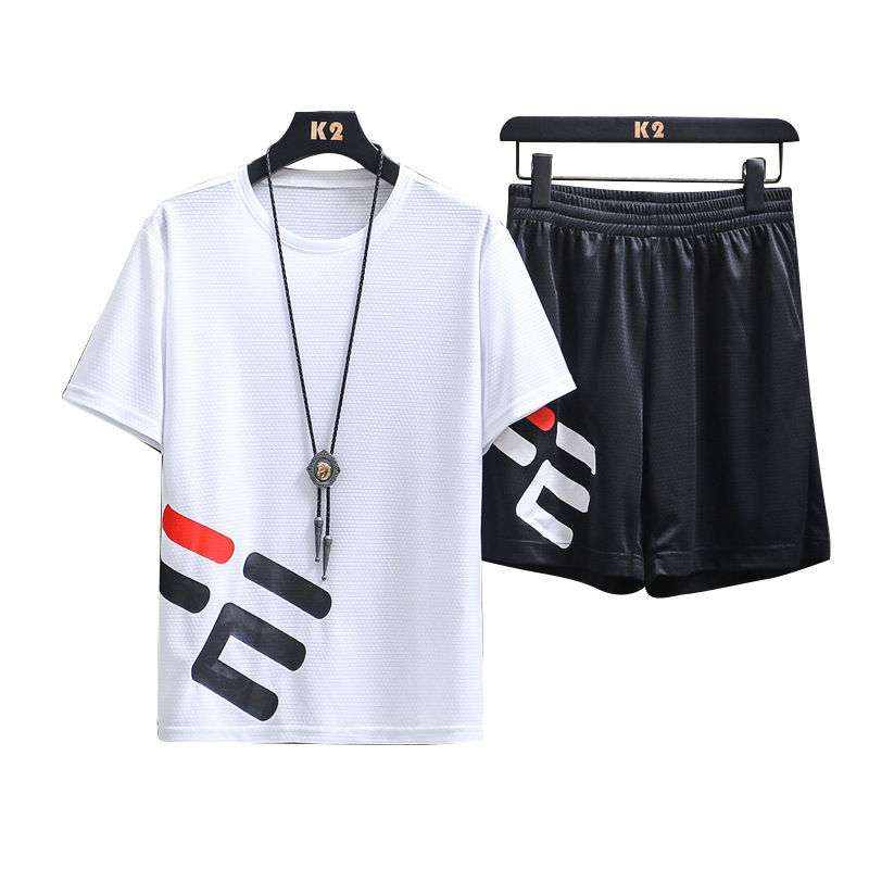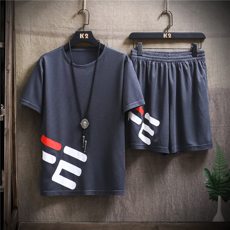 بدلة رياضية كاجوال رجالية عصرية سريعة الجفاف قابلة للتنفس مطبوعة بأكمام قصيرة