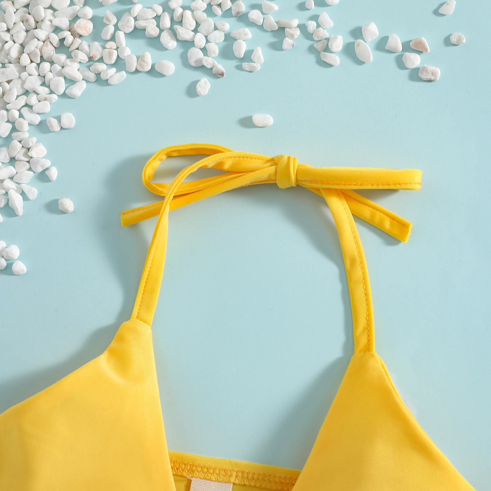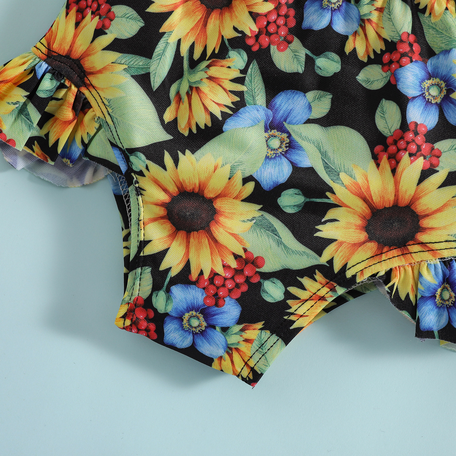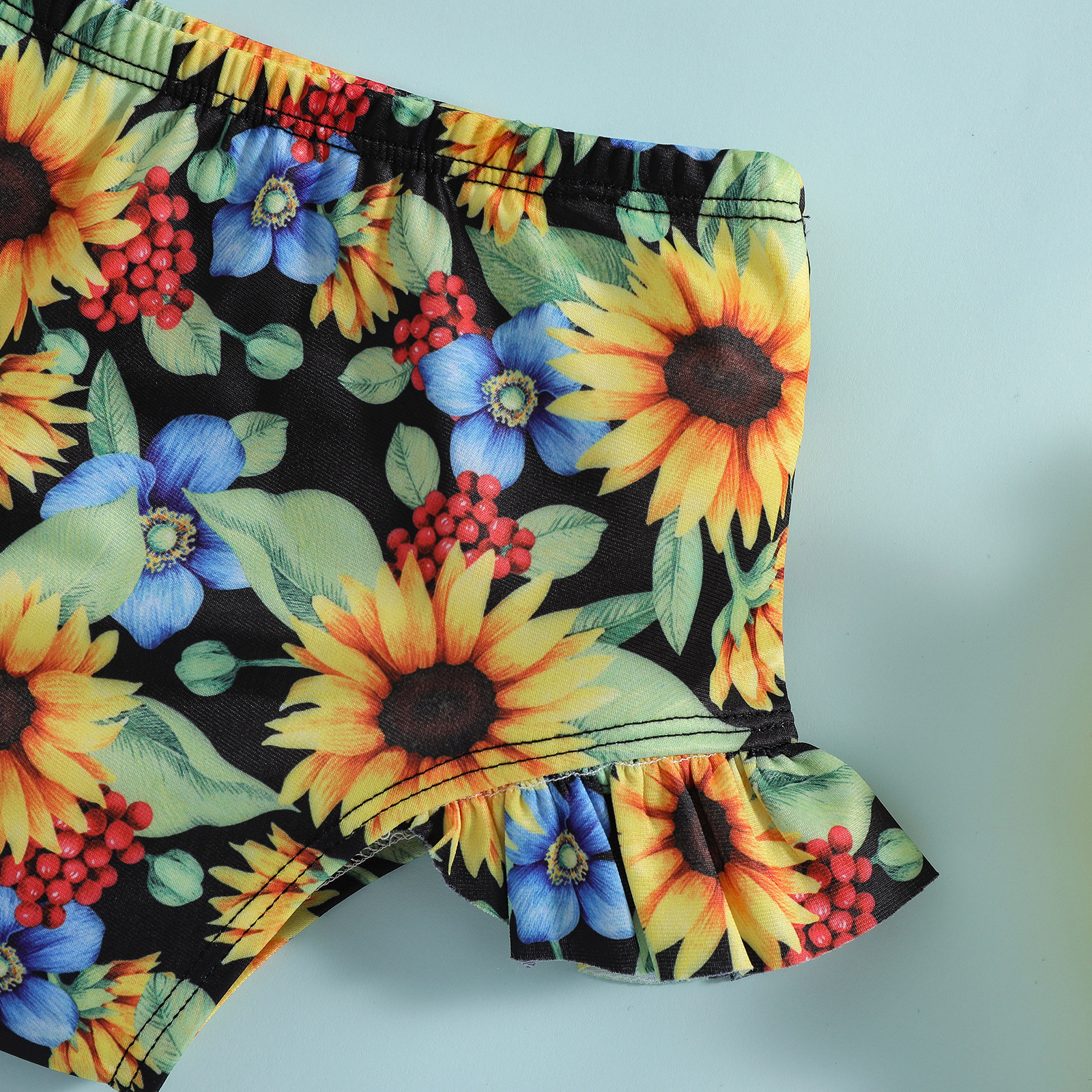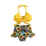بدلة سباحة من قطعتين للبنات مزينة بطبعة زهور، برباط أمامي رفيع وفتحة جانبية.