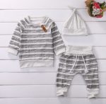 بدلة مخططة للأطفال مع قبعة بيضاء من ثلاث قطع