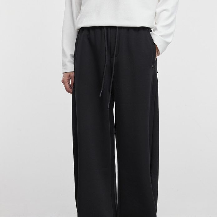 بنطال رياضي رجالي بقصة مستقيمة، مناسب لفصلي الخريف والشتاء، بتصميم فضفاض واسع الساقين