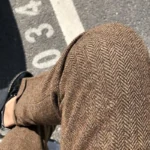 بنطلون بدلة رجالي من الصوف التويد – بنطلون رسمي من مزيج القطن بنقشة متعرجة للعريس وحفلات الزفاف وحفلات العمل