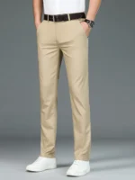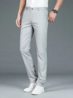 بنطلون بدلة عمل مستقيم فاخر عالي الجودة للرجال من ألياف الخيزران مصمم للربيع والصيف أنيق غير رسمي طويل رسمي للرجال