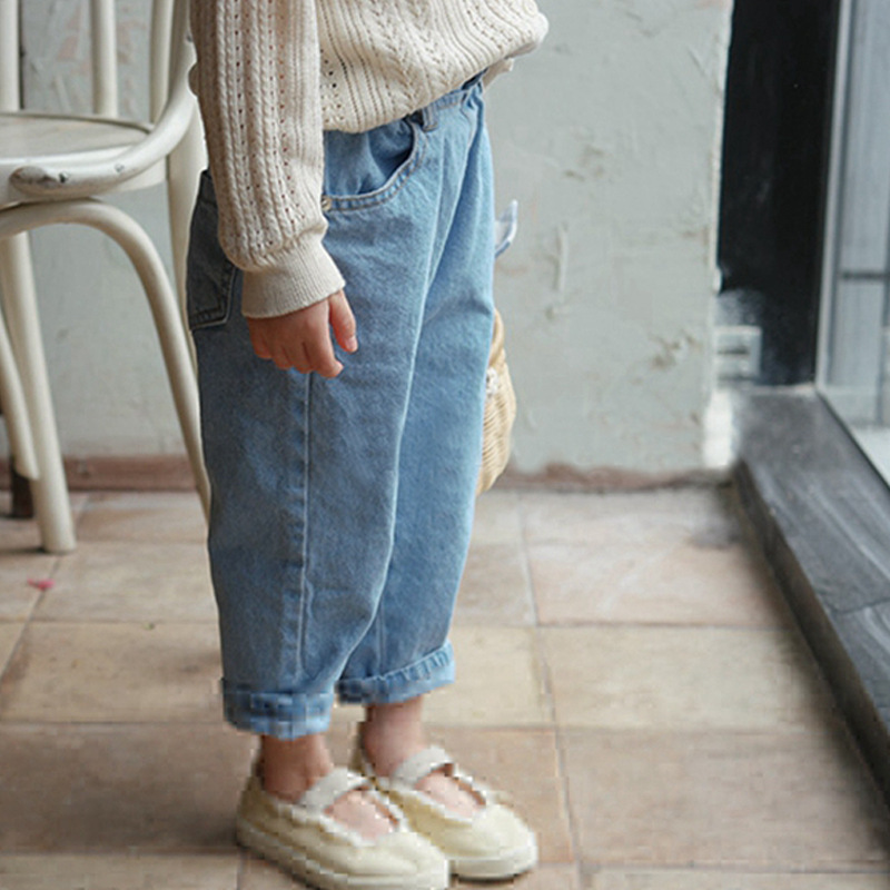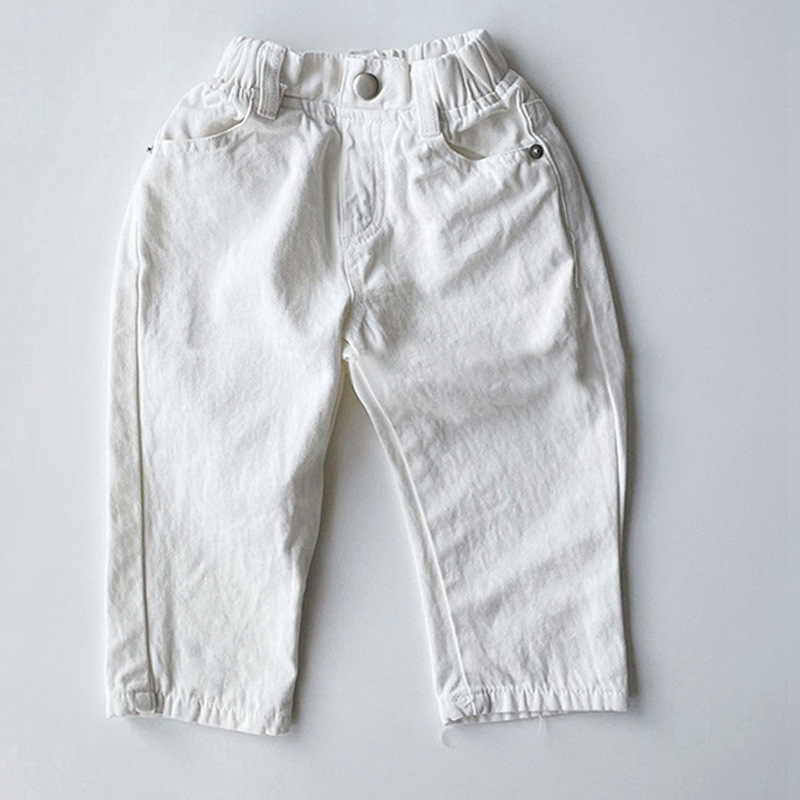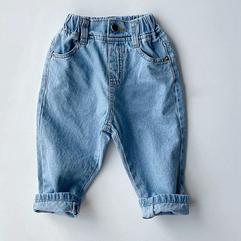 بنطلون جينز كاجوال بخصر مطاطي بتصميم جديد وبسيط وسهل التناسق للأطفال