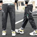 بنطلون جينز للأولاد خريف وشتاء جديد من المخمل قطعة واحدة