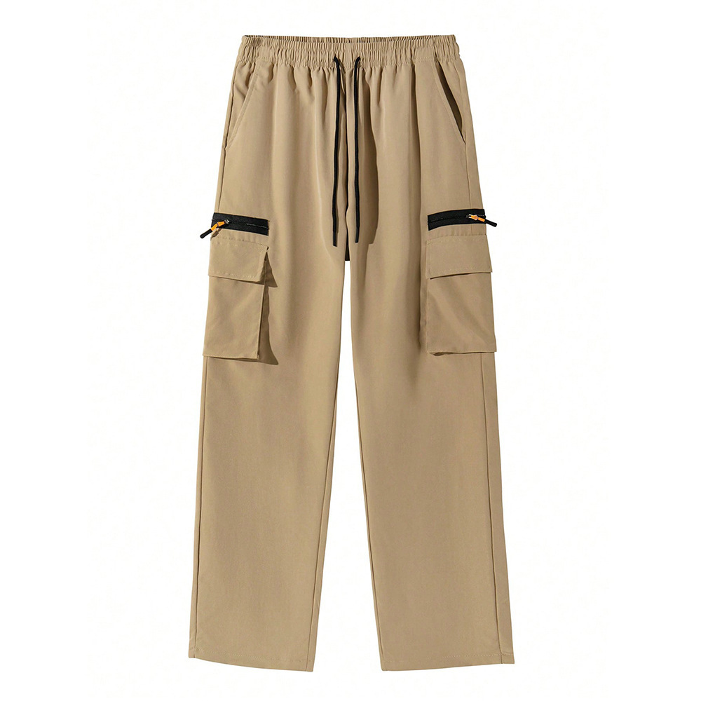 بنطلون رجالي أنيق وعصري بقصة فضفاضة بلون الكاكي