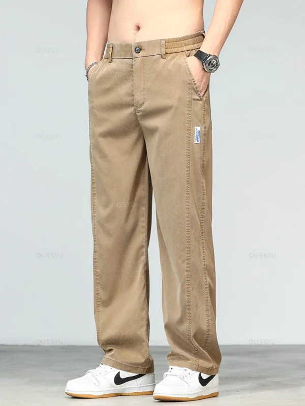 بنطلون رجالي صيفي جديد من الحرير الجليدي بخصر مطاطي مستقيم أسود رمادي بنطلون رجالي بسيط قابل للتنفس بنطلون بدلة كاجوال