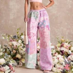 بنطلون نسائي من Mia Muse صيف 2025، بنطلون كاجوال طويل وواسع الساق وخصر منخفض، بنقشة زهور حلوة