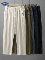 بنطلون DUKEEN رجالي من الكتان قابل للتهوية – بنطلون صيفي خفيف الوزن بطول الكاحل بساق مستقيمة وخصر مرن 2025