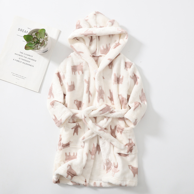 بيجامات فلانيل مطبوعة للبنات، ملابس استرخاء، روب حمام