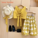 بير ليدر 2023 أزياء كورية بدلة بدون ظهر بلوزة رقيقة سترة بناتية بلوزة بولكا دوت بنطلون قصير ثلاث قطع