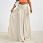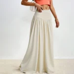 تنانير ميا ميوز الصيفية الأنيقة ذات الكشكشة المتناسقة ذات اللون الطبيعي مع خصر طبيعي للنساء