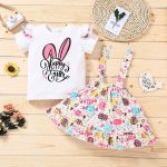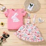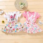 تنورة بأكمام طويلة مزينة بحروف مطبوعة بنقشة أرنب للبنات