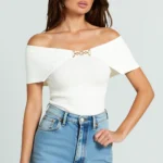 تيشيرت ميا ميوز بقصّة “سليم فيت” مكشوف الكتفين – بلوزة صيفية كورية أنيقة للنساء | تيشيرت أنيق سادة بأكمام قصيرة