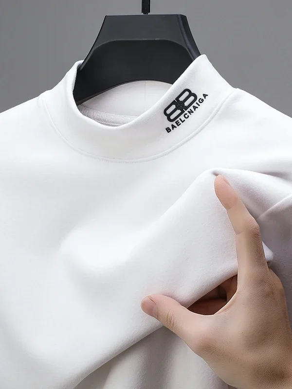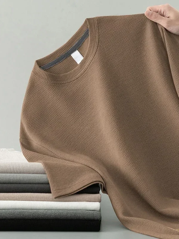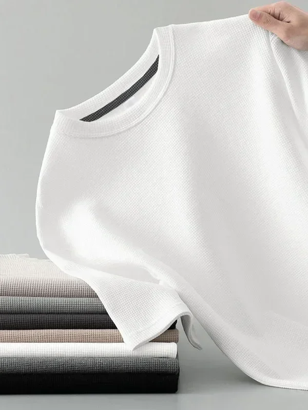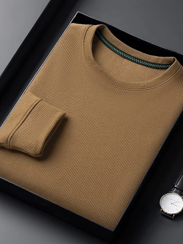 تي شيرت رجالي جديد لربيع وخريف 2024، رقبة دائرية ناعمة، لون سادة، أكمام طويلة، طبقة علوية، طبقة أساسية من القطن