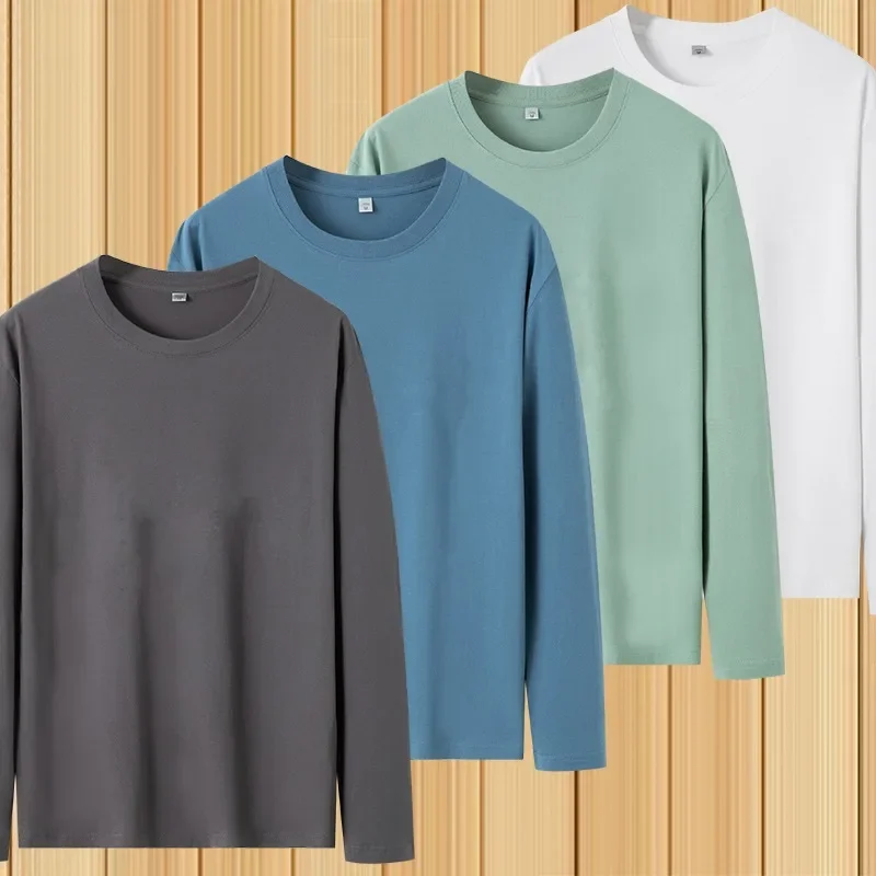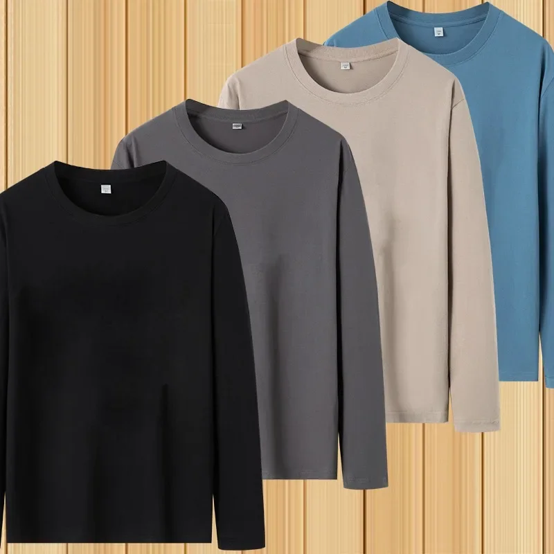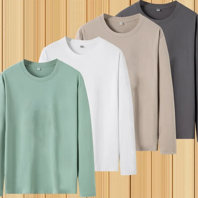 تي شيرت رجالي جديد لربيع وخريف 2024، رقبة دائرية ناعمة، لون سادة، أكمام طويلة، طبقة علوية، طبقة أساسية من القطن