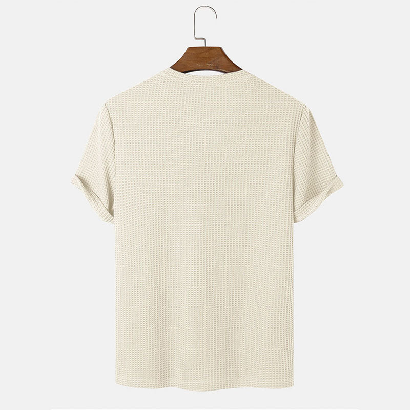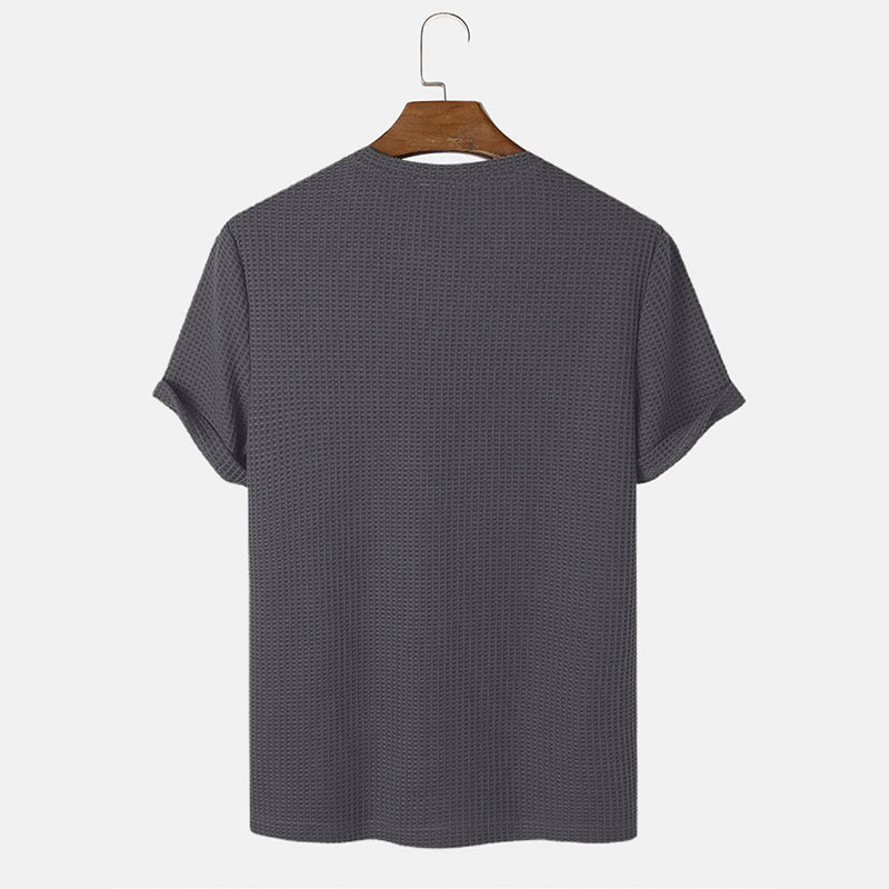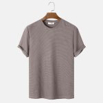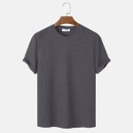 تي شيرت رجالي صيفي أساسي برقبة دائرية بلون سادة