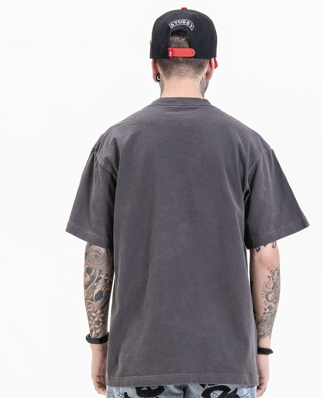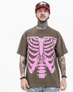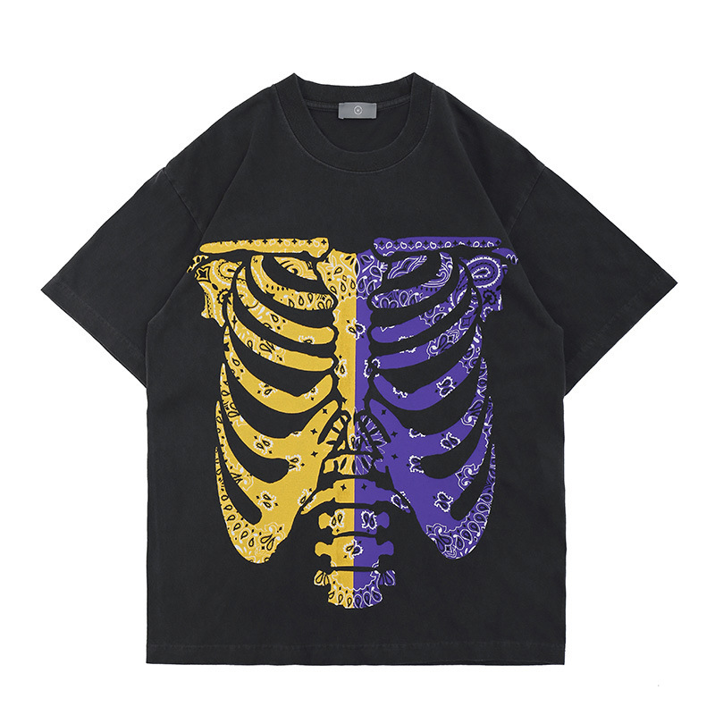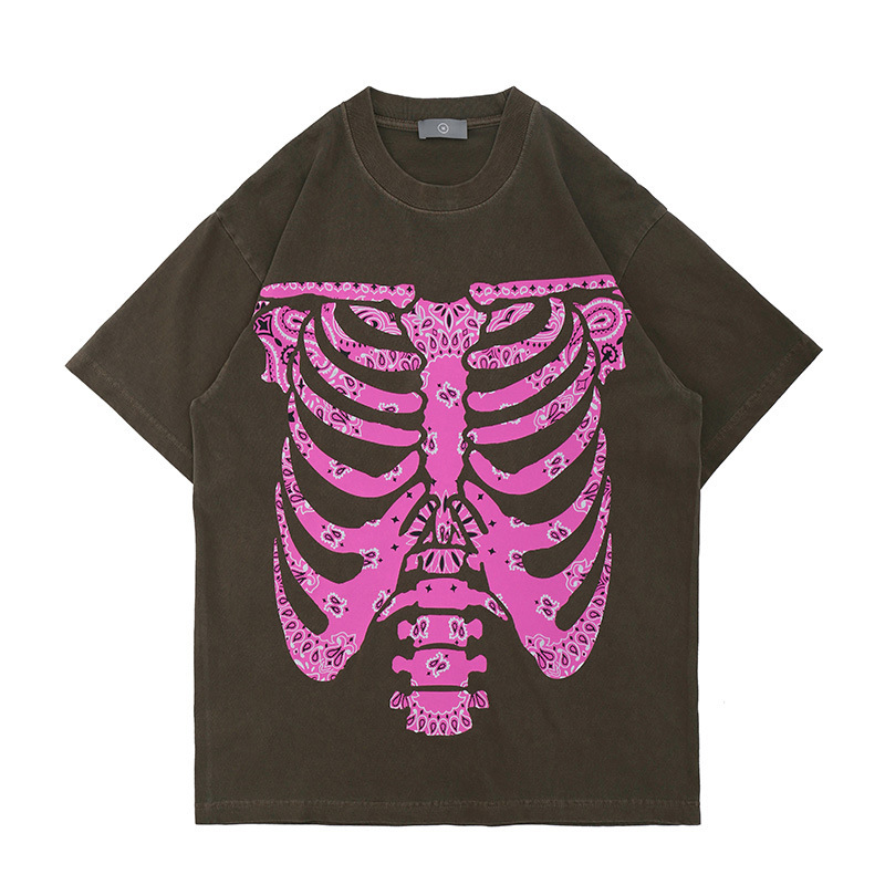 تي شيرت رجالي فضفاض بأكمام قصيرة مزين بزهرة الكاجو الهيكلية