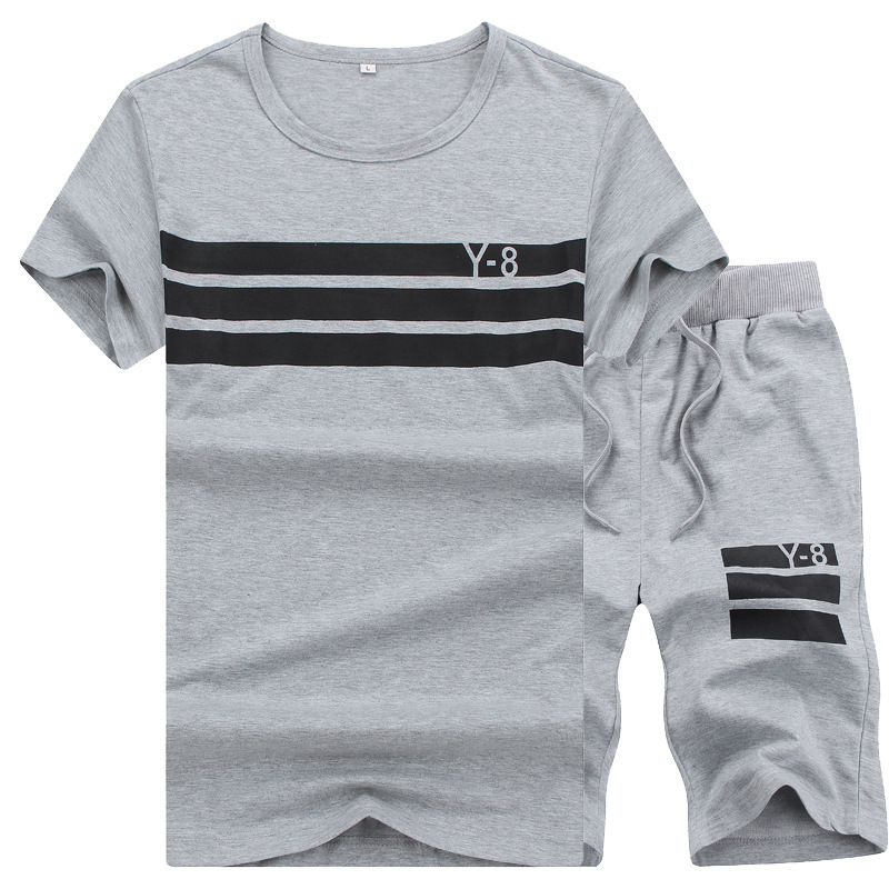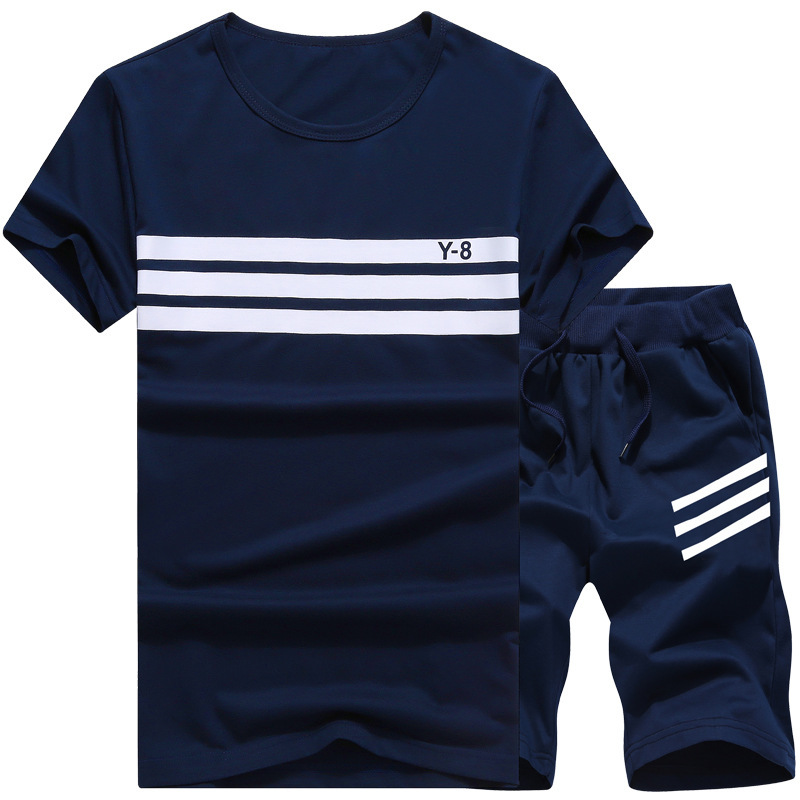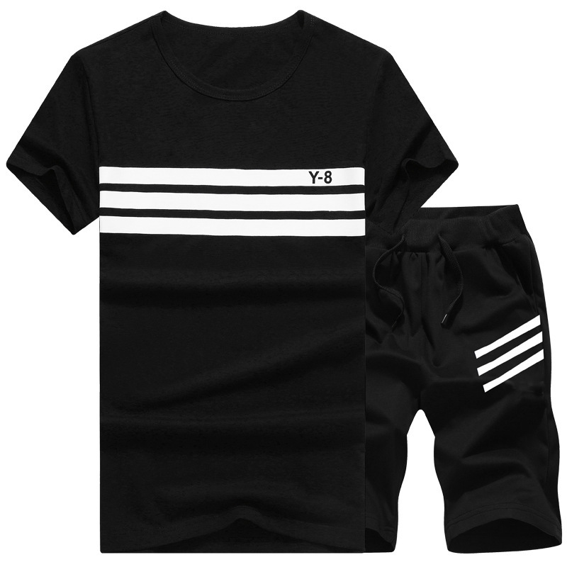 تي شيرت صيفي بأكمام قصيرة وبنطلون رياضي كاجوال بخمس نقاط