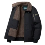 جاكيت رجالي جديد شتوي من صوف الحملان بمقاسات كبيرة، مصنوع من القطن بالكامل، وياقة مبطنة بالصوف – معطف قطني عملي بتصميم طيار