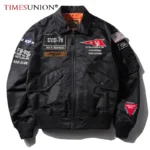 جاكيت رجالي ربيعي وخريفي رفيع باللون الأخضر العسكري للدراجات النارية من Ma-1 Aviator Pilot Air Men Bomber Jacket مطرز ياقة ثابتة مناسب لجميع المناسبات