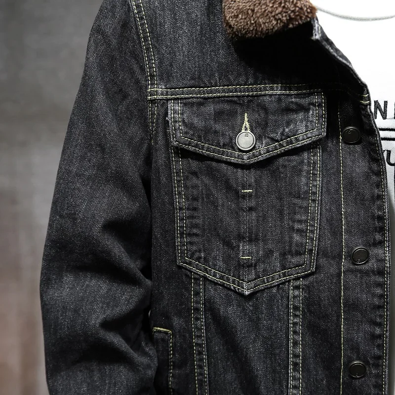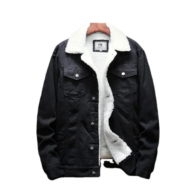 جاكيت رجالي شتوي سميك ودافئ باللون الأزرق، جاكيت جينز بلون واحد من بوتيك الأزياء / معطف من الصوف الأسود، مقاس آسيوي M-5XL 6XL