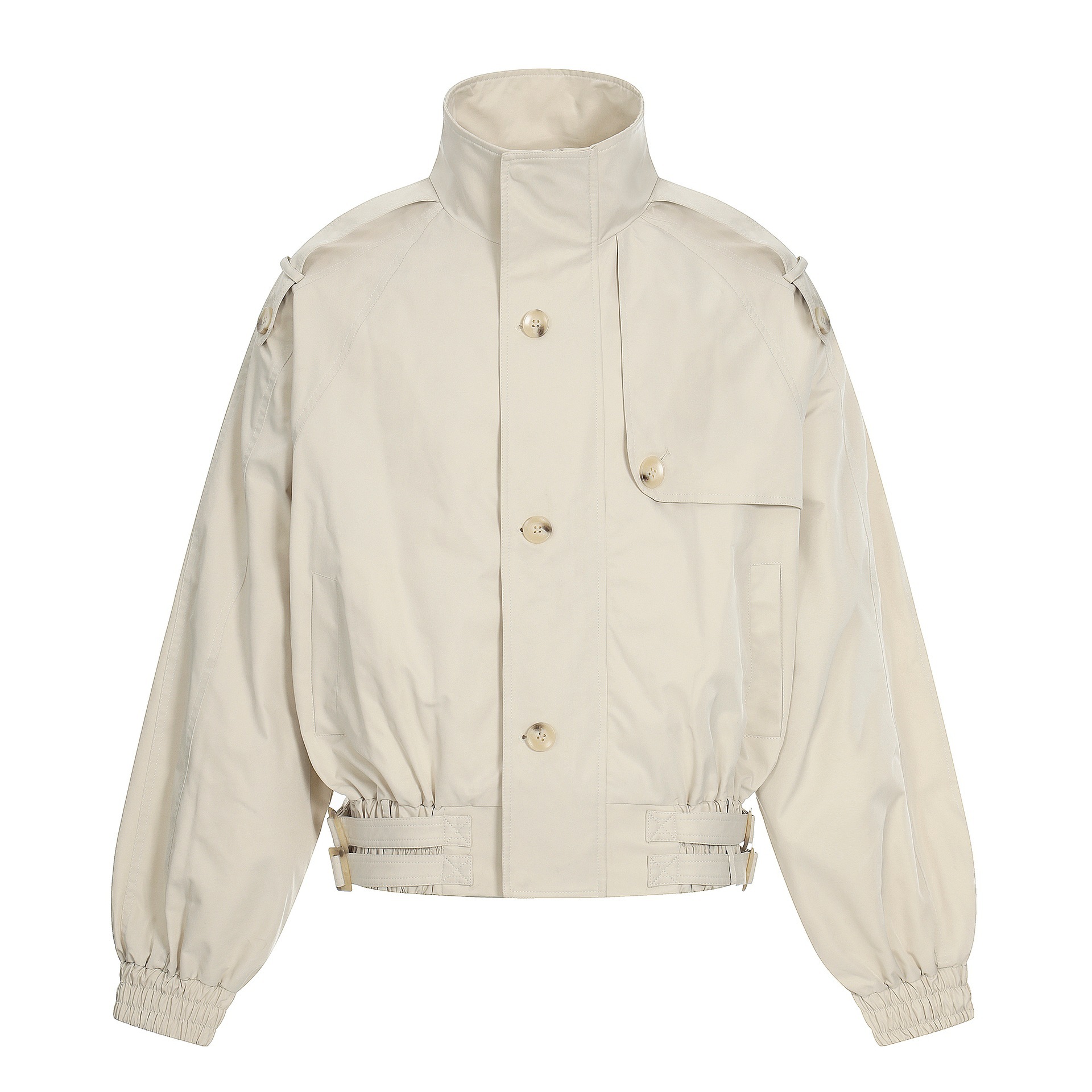 جاكيت رجالي قصير كاجوال بلون موحد بتصميم كلاسيكي وياقة واقفة
