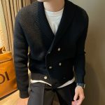 جاكيت رجالي محبوك بلون موحد على الطراز البريطاني مناسب للعمل