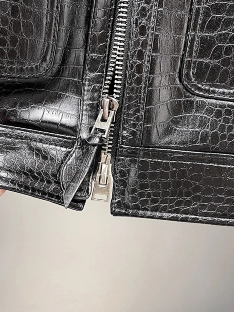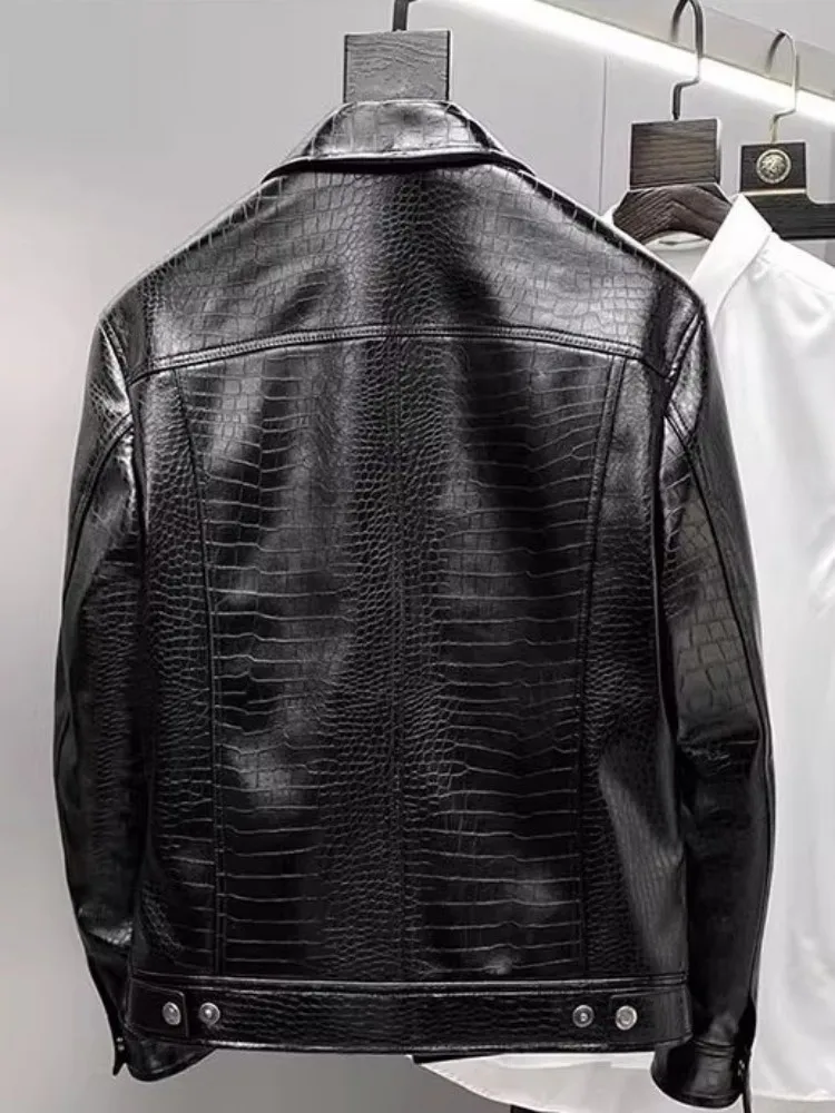جاكيت رجالي من الجلد الأصلي بتصميم فاخر مع سحاب ونمط تمساح أنيق مناسب للمكتب، معطف قصير من جلد الغنم الحقيقي بقصة ضيقة