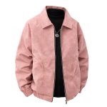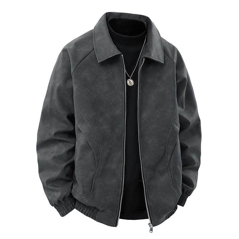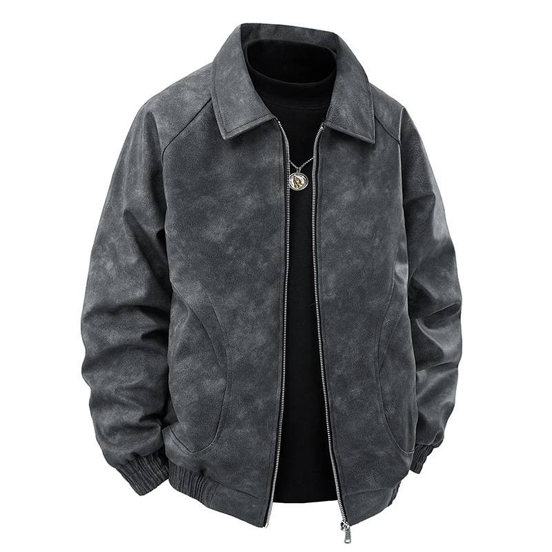 جاكيت رجالي من جلد الغزال بتصميم كلاسيكي مقاوم للرياح، لون بني عتيق، بياقة عريضة