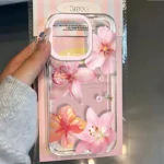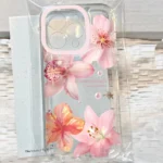 جراب هاتف TPU بزهرة الزنبق الوردية – غطاء شفاف ناعم لأجهزة iPhone 11 إلى 16 Pro Max