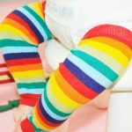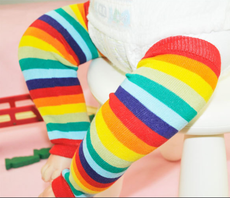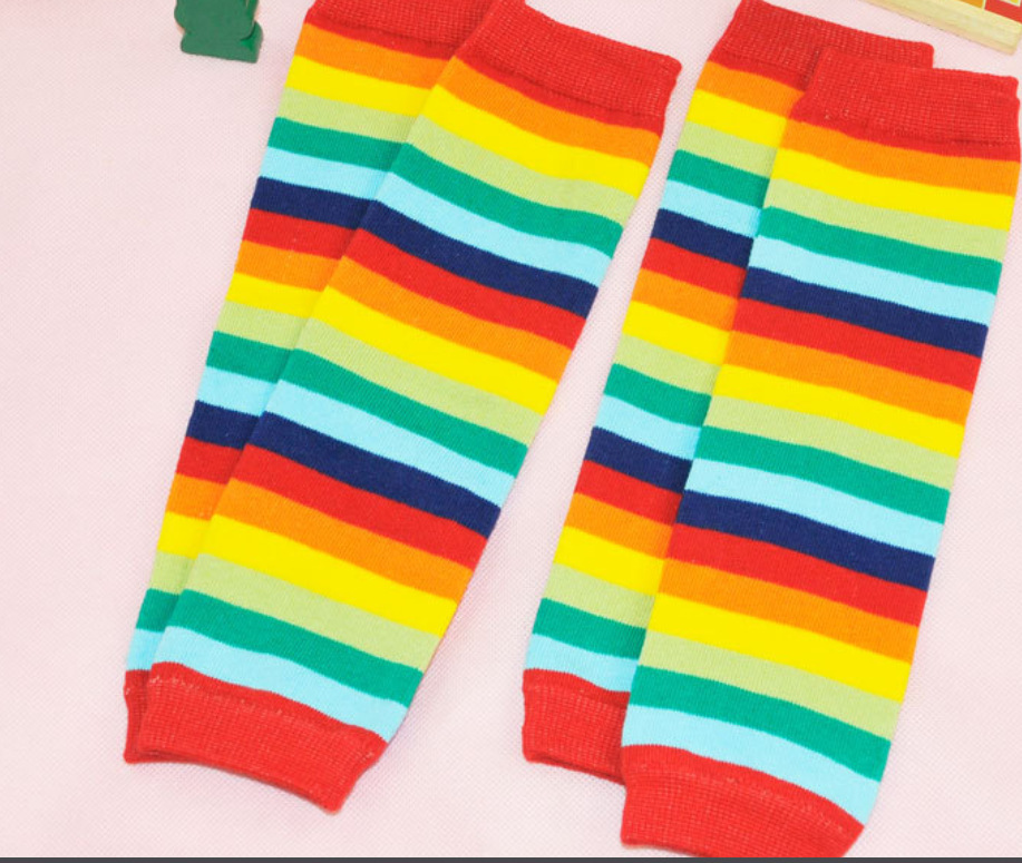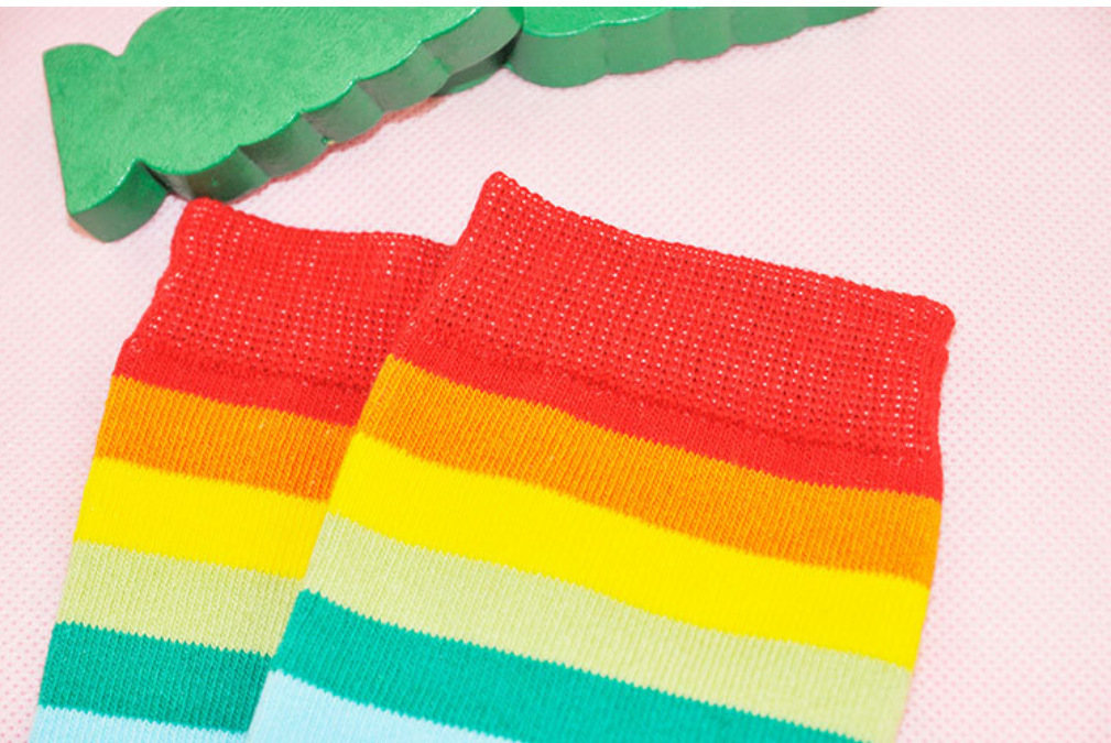جوارب أطفال مخططة بألوان قوس قزح وواقيات للركبة وحماية للساقين