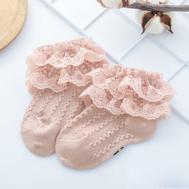 جوارب أطفال من الدانتيل، جوارب أميرة مزدوجة الدانتيل، جوارب قطنية للأطفال، جوارب رقص